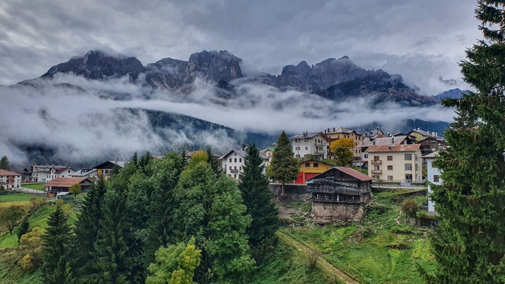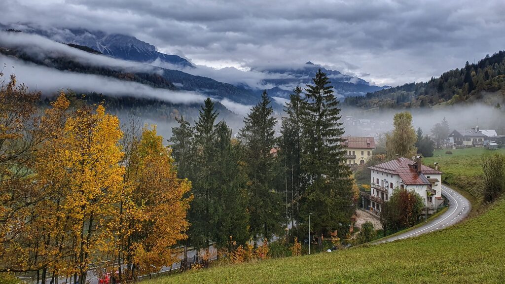Kolejnym miejscem, gdzie zatrzymaliśmy się tylko dla zdjęć była miejscowość Santo Stefano di Cadore. Mgły zrobiły tu dla nas wyjątkowy spektakl. Okolica wyglądała jak z bajki: kolorowe domki, gęste lasy i góry schowane w chmurach.