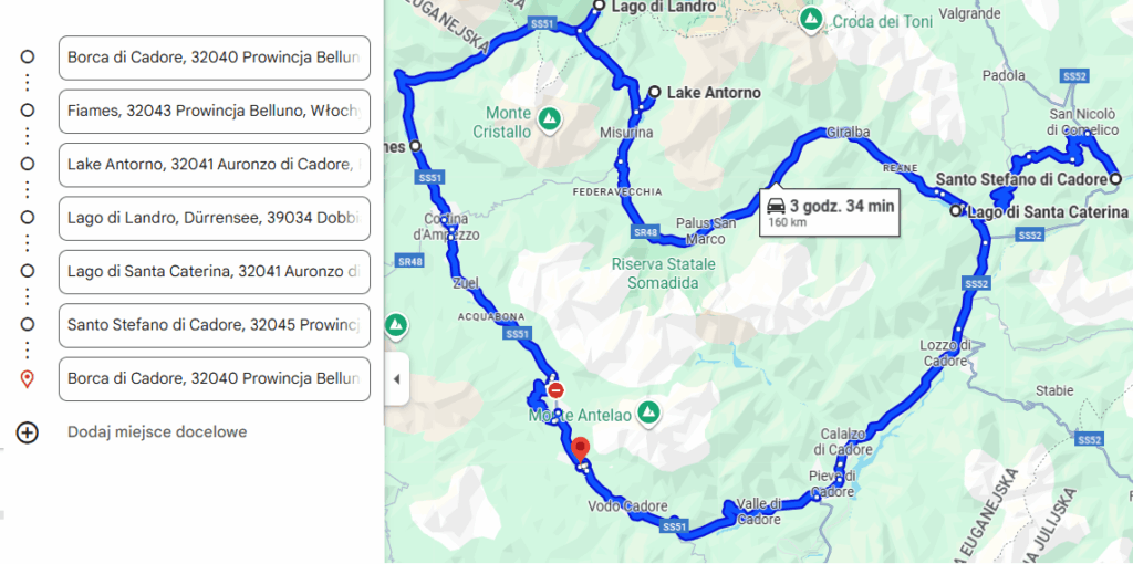Powrót zaplanowaliśmy przez Santo Stefano di Cadore i Lozzo di Cadore, zamykając pętlę z powrotem do Borca di Cadore.