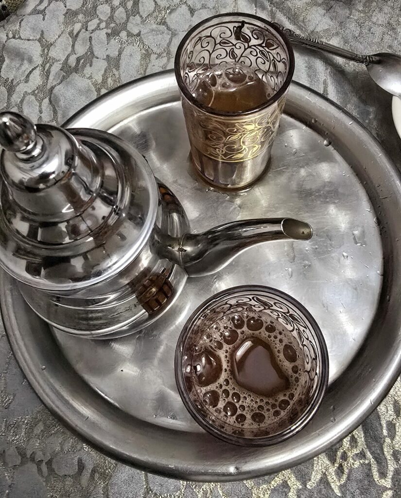 Na koniec jeszcze drobna ciekawostka – Marokańczycy nazywają często swoją herbatkę „berberyjską whisky”. Początkowo brzmiało dla nas trochę zagadkowo. Ale kiedy dotarliśmy do Marrakeszu, gdzie odbywały się rozgrywki Pucharu Narodów Afryki, wszystko stało się jasne. W licznych knajpkach i kawiarniach kibicujący mężczyźni siedzieli przy stolikach z dzbankami pełnymi herbaty kibicując ile sił w piersiach. No cóż – jedni kibicują przy piwie, inni przy whisky, choćby berberyjskiej.