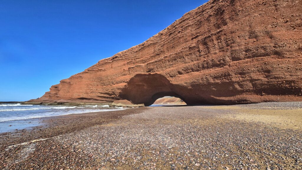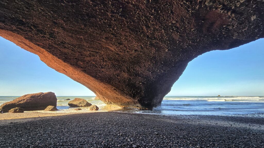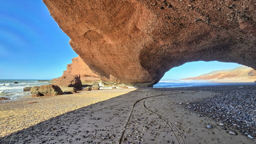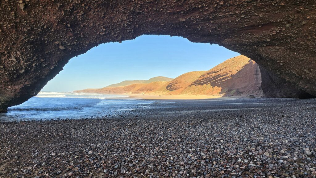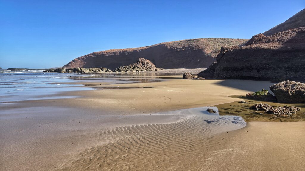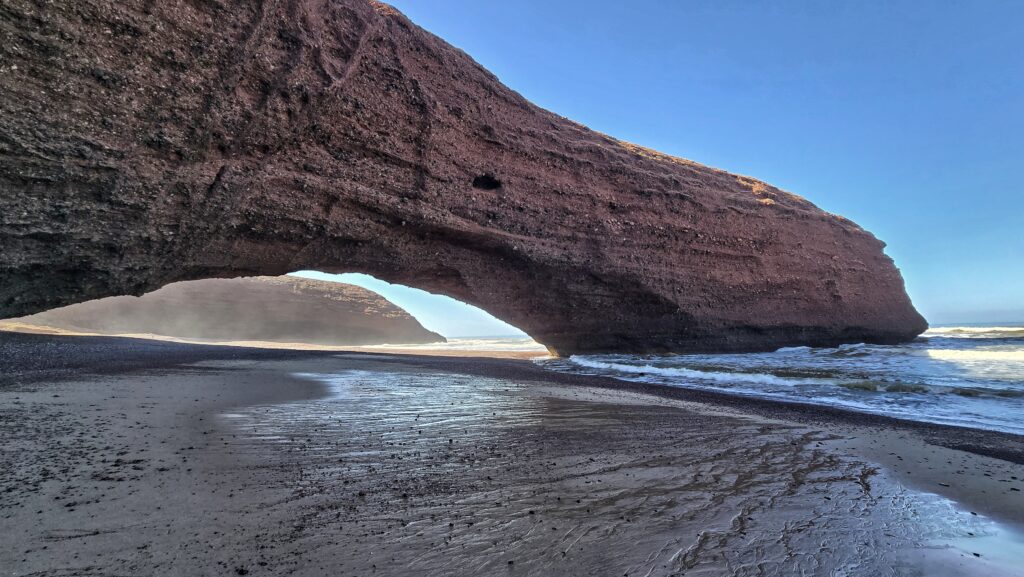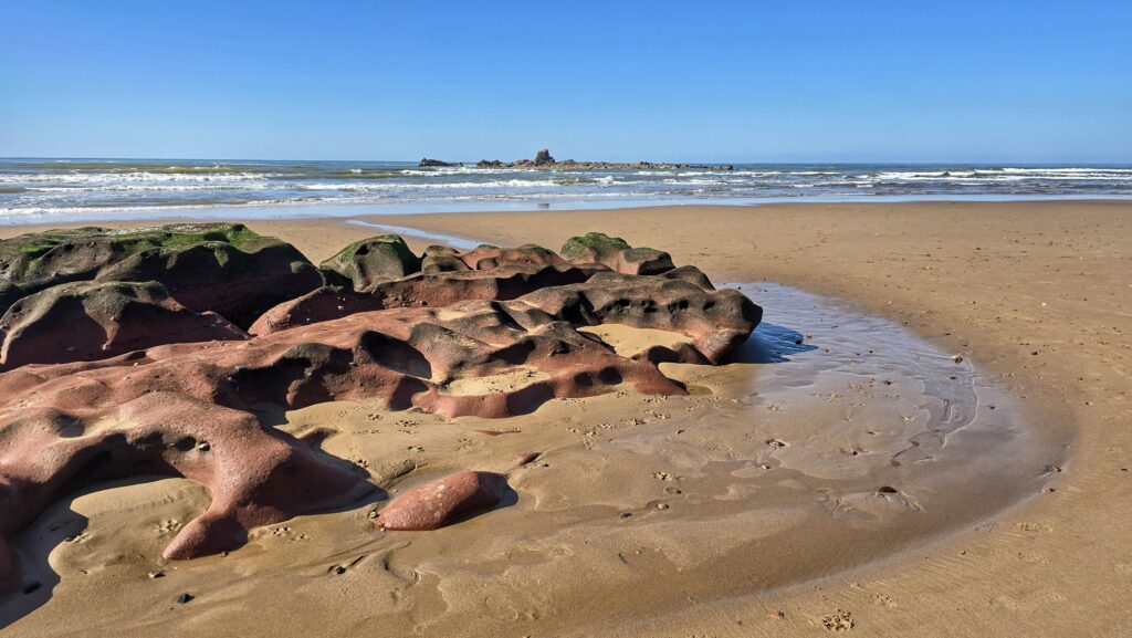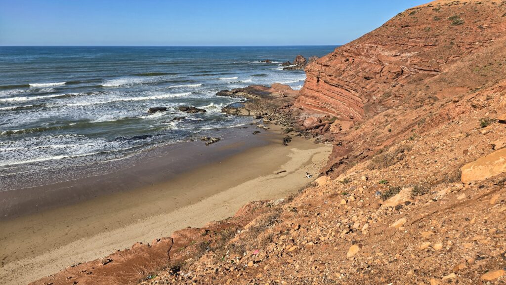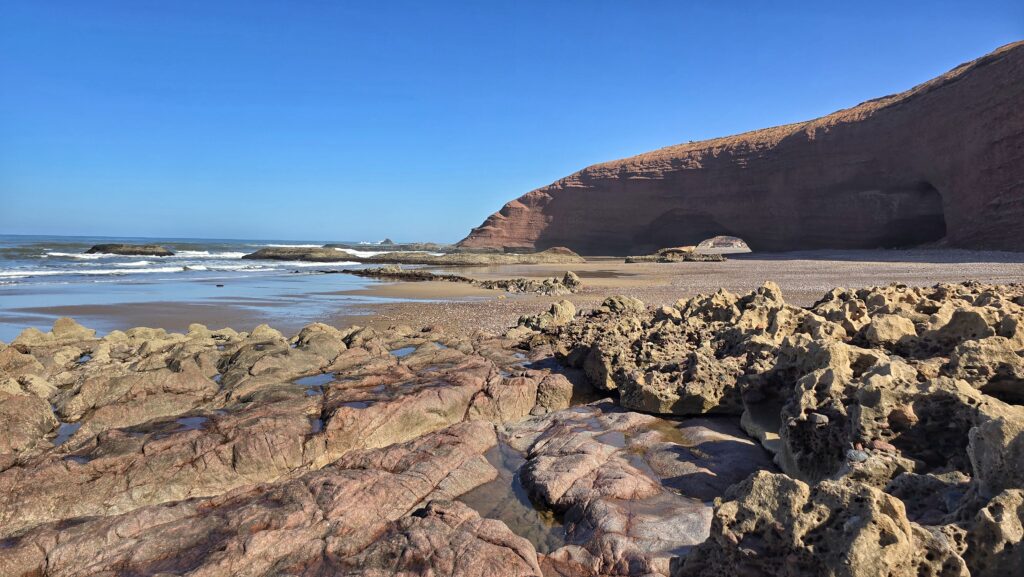 Nie tyle dla samych widoków bo te choć piękne, nie okazały się aż tak spektakularne jak wąwóz Dades czy pustynia – lecz dla chwili prawdziwego wytchnienia. Po kilku dniach pełnych wrażeń i tego specyficznego, marokańskiego „zamieszania” znaleźliśmy tu ciszę i spokój. Szum oceanu, niemal pusta plaża i niespieszne tempo tego miejsca pozwoliły nam zatrzymać się na moment i złapać oddech.