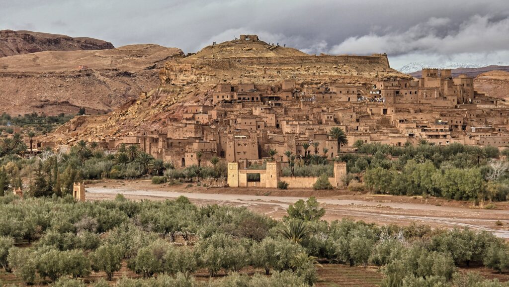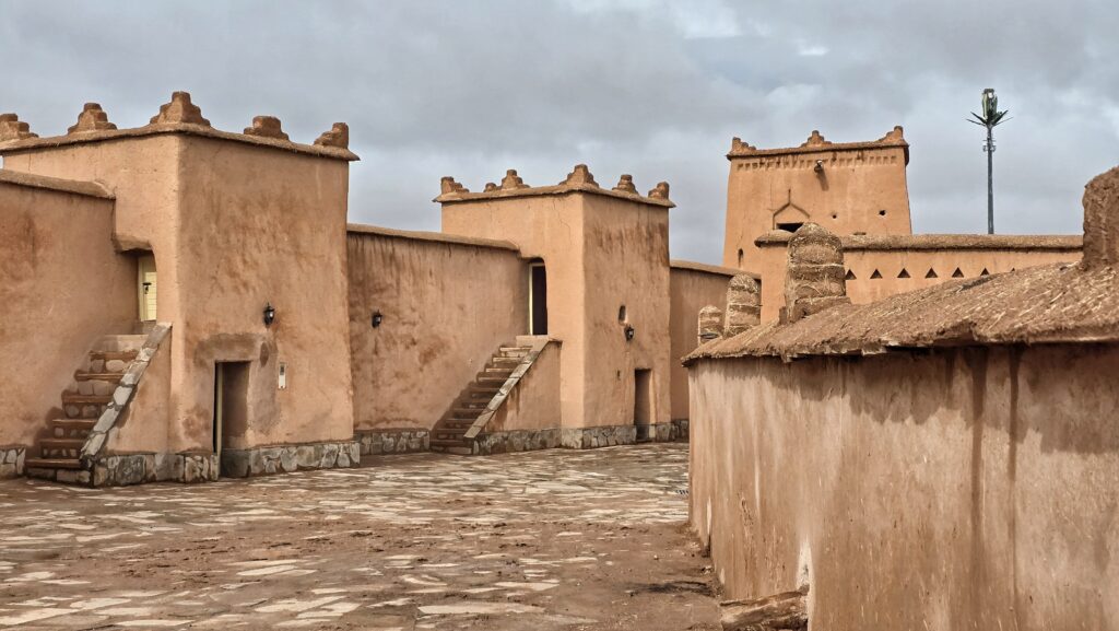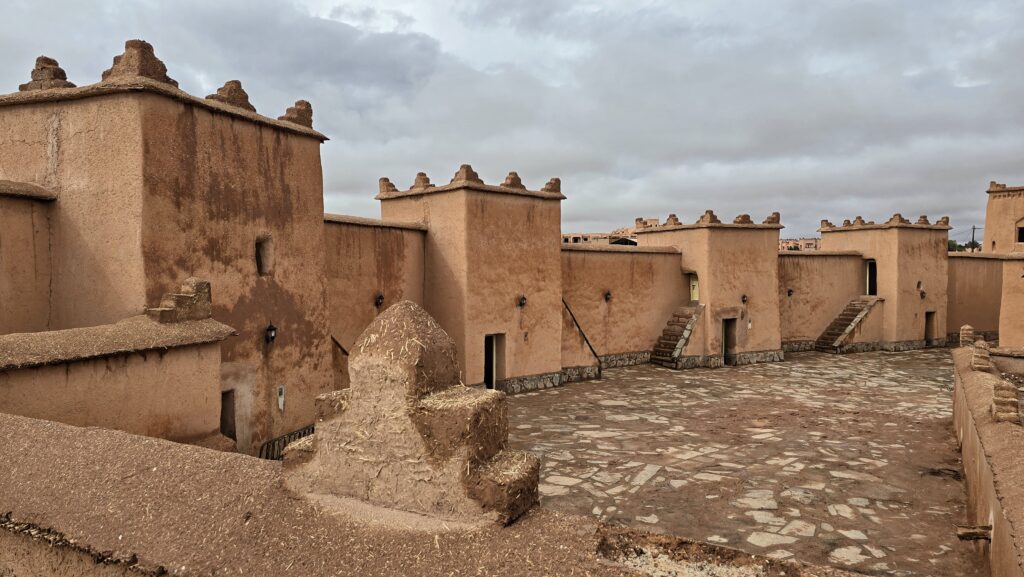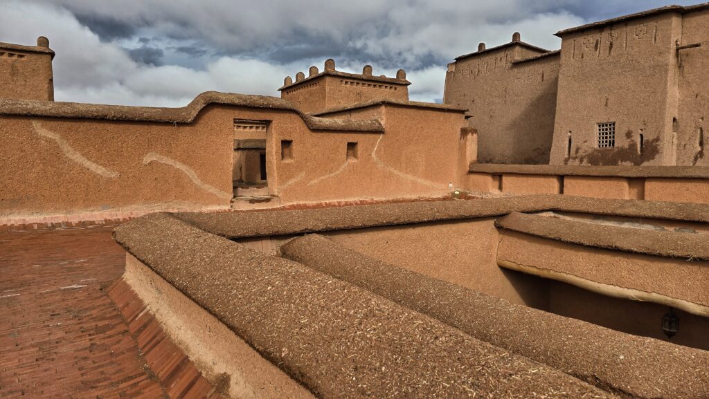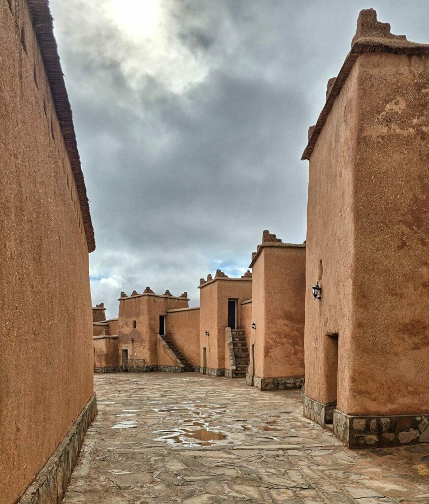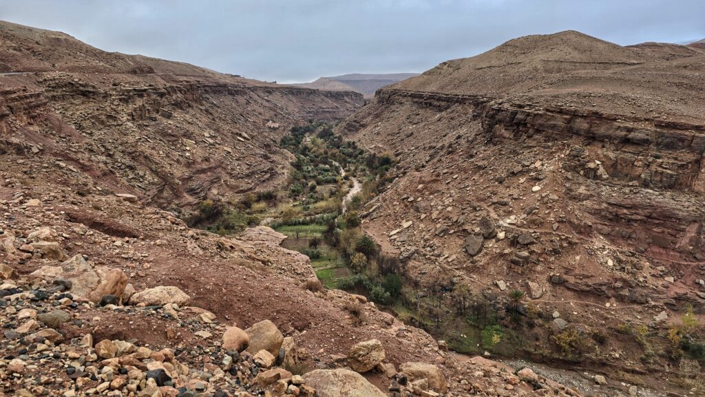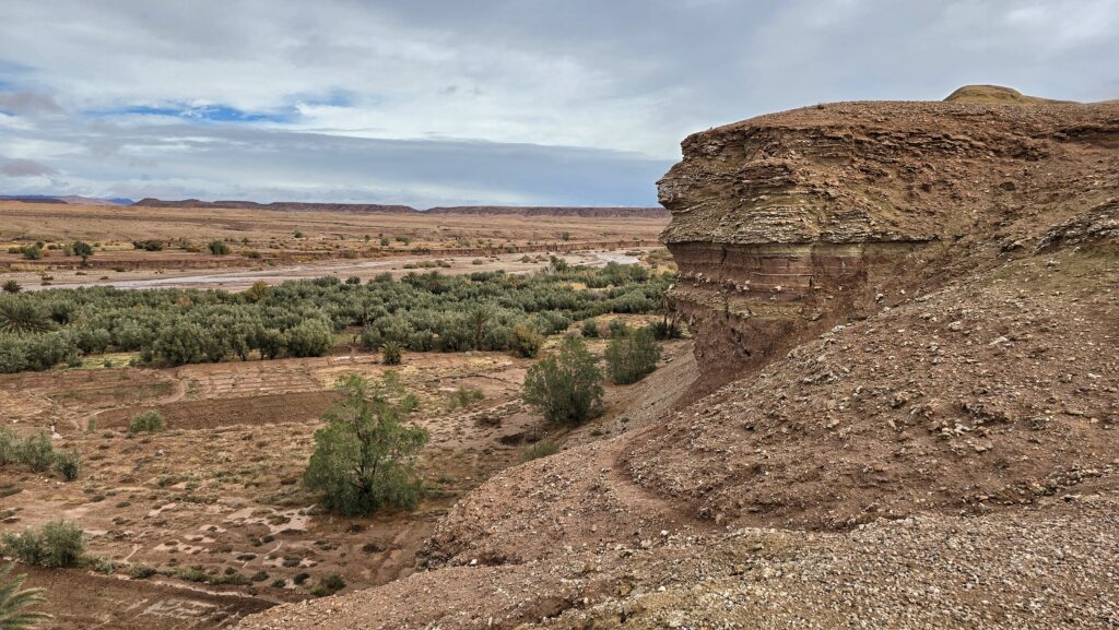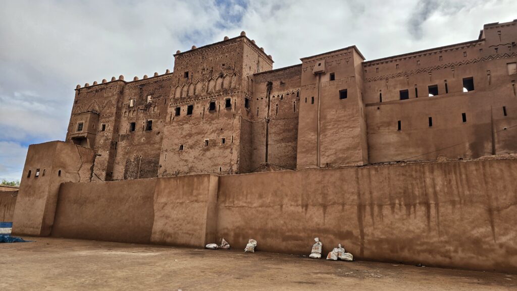 Poranek w Telouet nieco nas zaskoczył. Myśleliśmy, że przynajmniej w Maroku ominie nas odśnieżanie auta. A tu niespodzianka — w nocy spadło kilkanaście centymetrów białego puchu, co przy uniwersalnych oponach okazało się nie lada wyzwaniem. Na szczęście temperatura była dodatnia, więc to, co spadło, dość szybko zaczęło się topić. Po kilkunastu kilometrach jazdy zamiast śniegu mieliśmy… błoto!