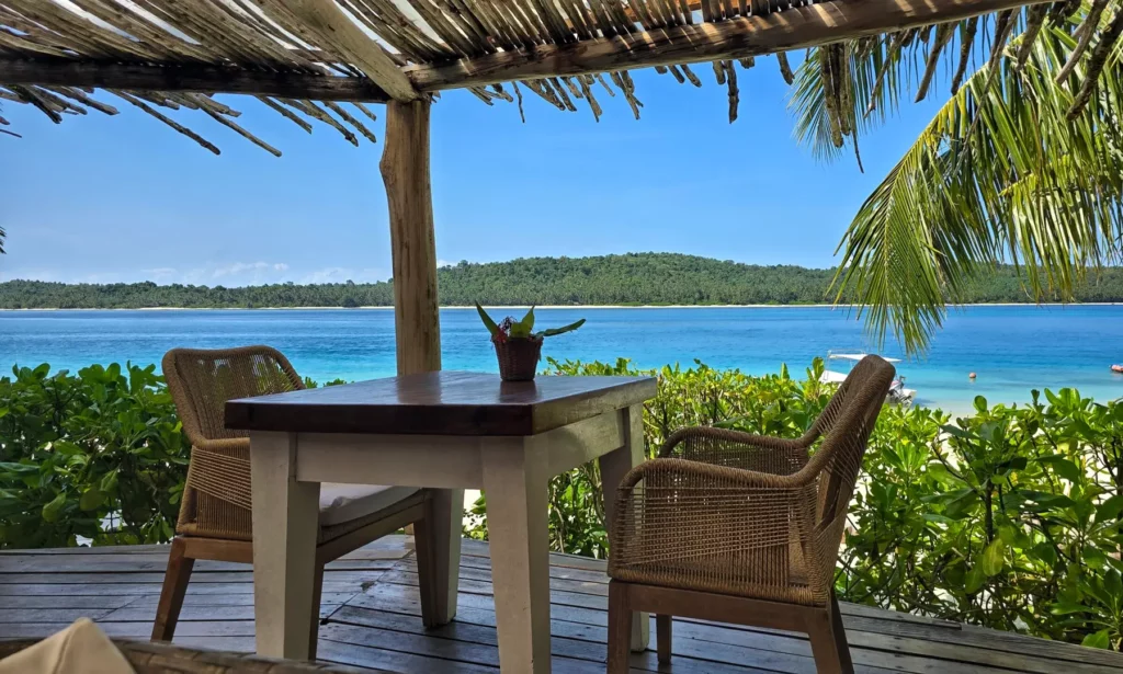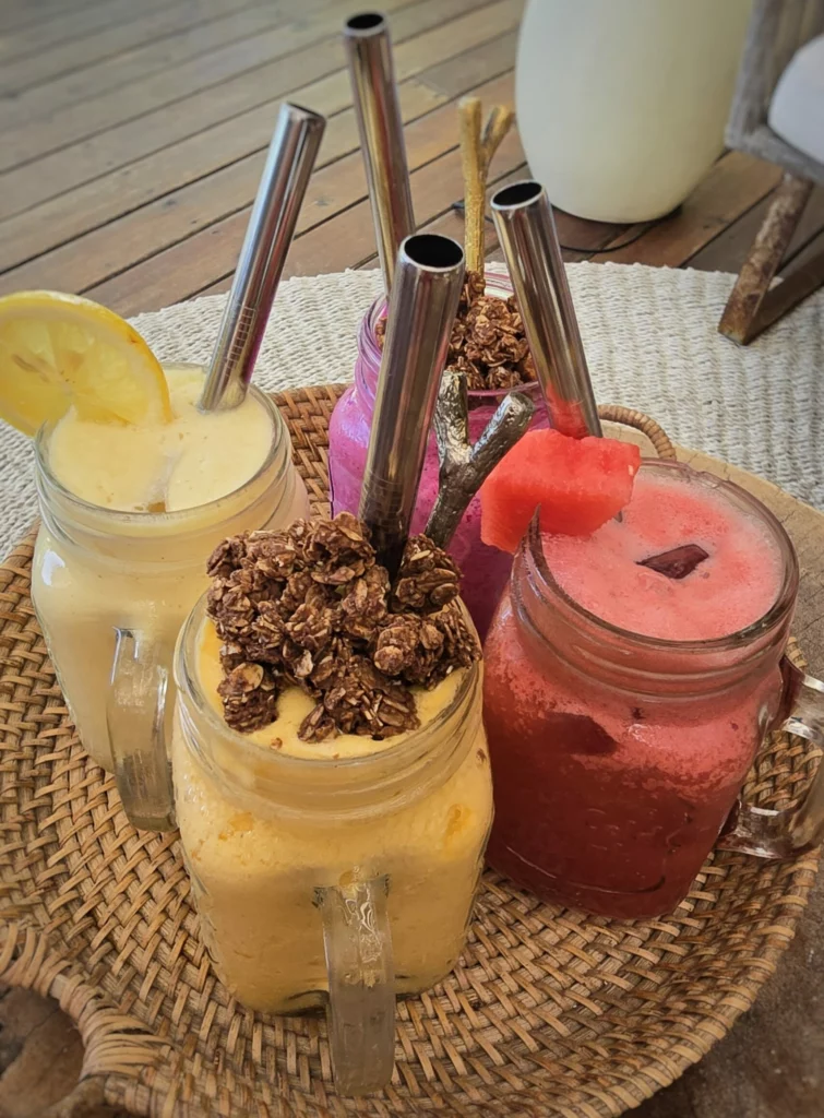 Po kilku godzinach spędzonych na słońcu zrobiliśmy sobie tu krótką przerwę. W cieniu palm usiedliśmy przy drewnianym tarasie i zamówiliśmy przepyszne owocowe smoothie – idealne po całym dniu pływania.