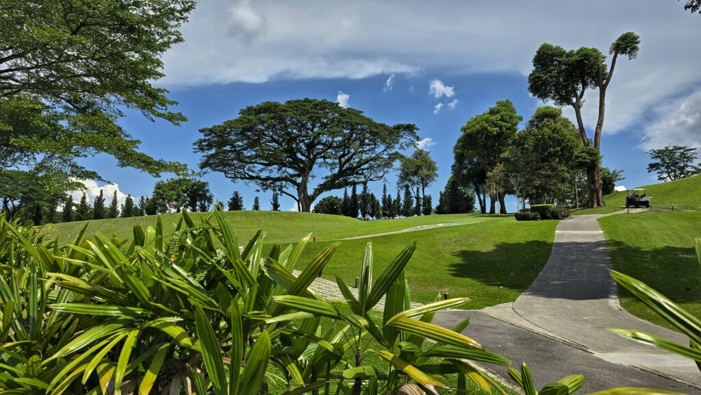 Końcówka trasy prowadziła już wzdłuż idealnie przystrzyżonych terenów Singapore Island Country Club (SICC). Nie ukrywam, że po godzinach w dżungli ten widok był miłą odmianą  – równa, soczyście zielona trawa, cisza i przestrzeń, która nagle zastąpiła gęstą, wilgotną ścianę roślinności.